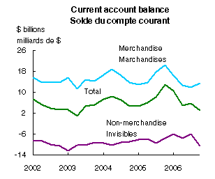 Labour marketsEmployment growth slowed to 0.1% in February, after surging a total 0.8% over the previous two months. Most of the increase was among youths. With the labour force little changed in the month, the unemployment rate returned to its record low of 6.1%.Unemployment hit record lows on both coasts, although for different reasons. In the Atlantic region, small job gains and a shrinking labour force pushed the unemployment rate down to 8.9%, after rising above 10% in January for the first time in eight months. New Brunswick led the way, with unemployment dipping below 7% for the first time ever, mostly because its labour force shrank 2.4% in the past year. BC also set a record low with a 4.0% unemployment rate, although this was driven by impressive job growth of 3.5% over the past year. Alberta continued to post the largest employment gains, powered again by its resource and construction industries. An influx of youths into the labour force kept unemployment from falling. There was little overall change in central Canada, where increases in services (notably finance) offset more losses in manufacturing. Leading indicatorsThe growth of the composite leading index returned to 0.5% in January, after a brief slowdown to 0.2% in December. Most of the acceleration originated in housing, where balmy weather early in the new year gave a boost to housing starts. Financial market conditions remained buoyant, while most other components posted slow, steady growth. The housing index swung from a 0.5% decline in December to a 2.8% increase in January. All of the turnaround originated in housing starts, where the stimulus of mild weather did not last past the second week of January. Durable goods sales posted 0.4% growth, probably a better representation of the underlying trend of consumer spending. Personal incomes were buoyed by steady job growth early in the new year. The stock market also bolstered household wealth, hitting a new high in January. Growth shifted from metals and energy to sectors more dependent on domestic demand. The money supply expanded steadily (since M1 is no longer available, we are now projecting growth using M1+). The leading indicator for the United States rose 0.1%, after a downward-revised 0.1% drop the month before. The gradual improvement in the outlook for our largest export market was reflected in an upturn in new orders from manufactured goods. Still, manufacturers struggled to keep inventories aligned with shipments, and continued to trim the workweek of employees. OutputMonthly GDP grew 0.4% in December, after an upwardly revised gain of 0.3% the month before. Services led both increases. While manufacturing rebounded, goods overall rose only 0.1% in both months, as the warm weather lowered demand for energy by over 3%.Almost all major service industries contributed to growth in December. Consumer spending led the way, reflecting solid gains for retailers, gambling and a wide range of travel-related services (such as air transport and food and accommodation). Goods-handling industries in wholesale and transportation also benefited from increased cross-border trade. By comparison, business services posted only modest growth, while government was restrained by cuts at the federal level. Manufacturing ended the year with solid back-to-back gains, offsetting its losses in September and October but still leaving output 2.8% below its most recent peak in December 2005. The turnaround was driven by sharp recovery in auto assemblies. Capital goods industries also posted solid gains, notably machinery and computers and electronics. The resource sector trimmed output across the board for a second straight month. Oil and gas led the drop, and drilling activity fell sharply for a fifth straight month amid concerns about another record warm winter like 2006 (seasonable cold returned in mid-January). Even non-energy resources slumped at year end. Metal mining retreated after two straight increases, while forestry and livestock production slowed. Household DemandHouseholders remained the largest contributor to growth in the fourth quarter. Labour income rose at an annual rate of 6% due to strong job growth, while prices of consumer goods and services was unchanged. Housing levelled off after back-to-back declines, reflecting a pick-up in the resale and renovation market.Retail sales volume jumped 2.3% in December, after two straight months of declining demand. Clothing led the increase with a 5% hike, reversing its losses in the previous two months. Some of the recent volatility may reflect unusual changes in the weather, an important driver of clothing purchases. Auto sales strengthened for a second straight month, capping a solid second half of the year after a weak first half. Spending on other durable goods remained robust. A resumption of price discounts boosted demand for computers and electronics. Furniture and appliance sales were buoyed by the strength of house sales at year end. Overall consumer spending growth was checked by lower energy needs due to unseasonably warm weather. Restaurants and taverns did a brisk business across the country, except Quebec where receipts fell 1% from a year ago after a ban on indoor smoking took effect. The drop was felt the most at full-service restaurants (-8%) and taverns (-11%), as caterers and fast food restaurants were unscathed. Housing started the year on a strong note. Housing starts jumped 19% in January to an annual rate of 250,000 units, their highest level in over two years. The record warmth at the start of the year clearly played a major role, as 85% of the increase was concentrated in multiple units, which are usually much more affected by adverse winter weather than single-family dwellings. Existing home sales rose 4% on the heels of a 5% advance in December. The increase was felt across the nation. Resale housing prices continued to rise at a double-digit annual rate. Merchandise tradeThe quarterly current accou