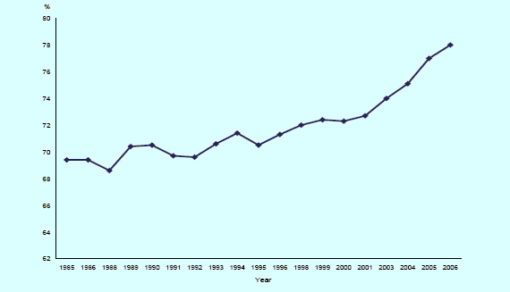 Note : All respondents in GSS 2002 were 45 years old or older, therefore they are excluded from this chart.