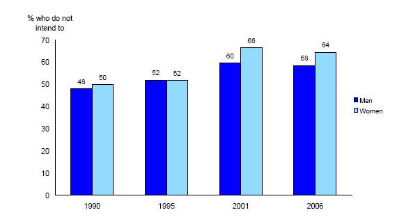 Source : Statistics Canada, General Social Surveys, 1990, 1995, 2001 and 2006.